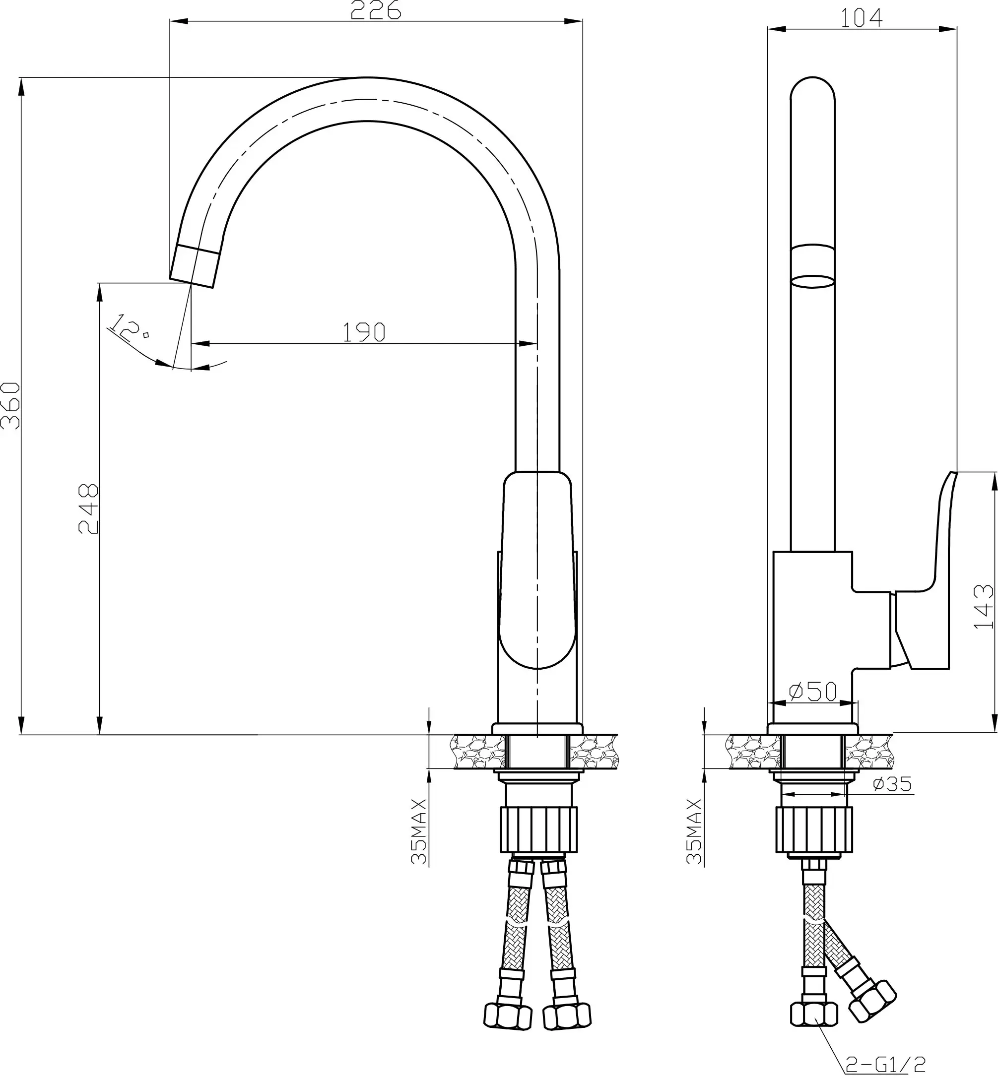 Μπαταρία κουζίνας με ψηλό ρουξούνι
